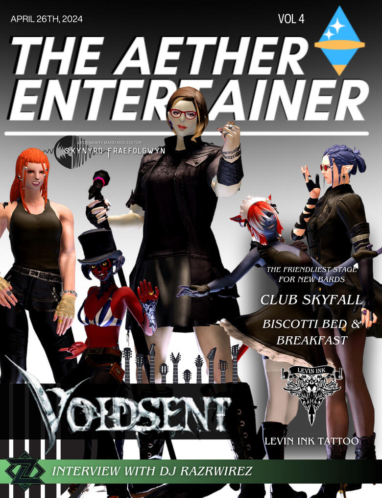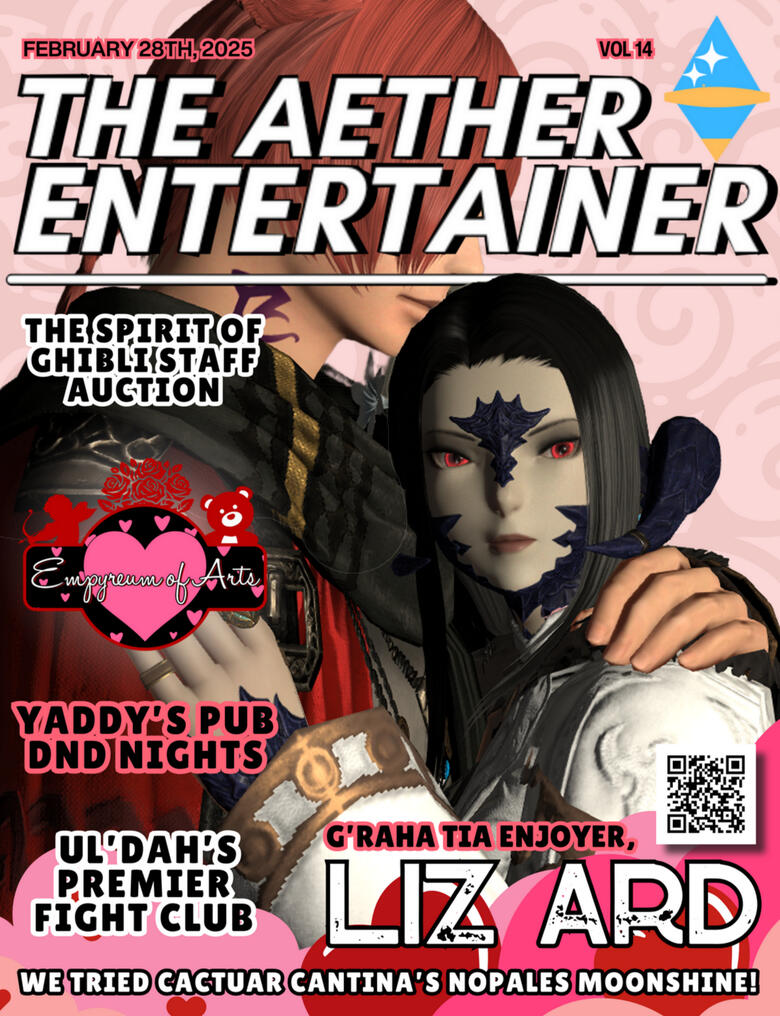 Founded in 2021 on Aether, The Aether Entertainer is player-made virtual magazine covering music, theatre, art, current events, and Eorzean popular culture. AE is a SFW publication that aims to provide information about venues, promote creators and upcoming events, as well as provide a pass time while drinking coffee. We often volunteer or sponsor other entity's events or even host our own at our home location, AE Cafe'. New publications are released monthly.